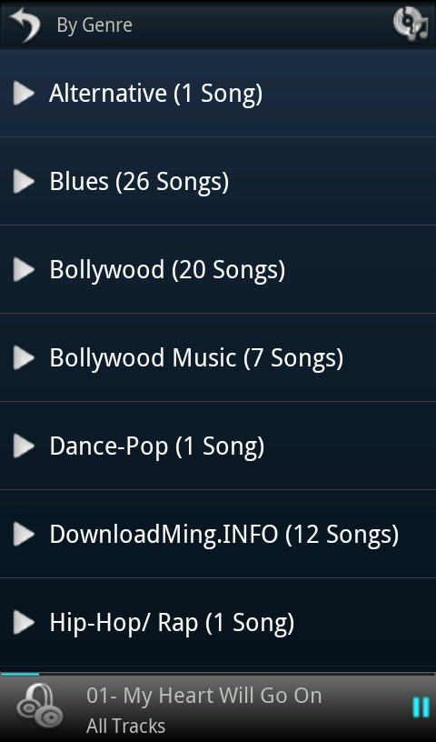 By Genre list contains songs grouped by Genre of the tracks.