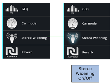 - Stereo widening Icon is toggle button to turn on or off the stereo widening effect
