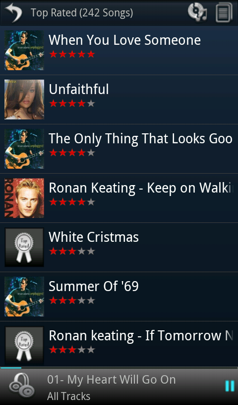 Top Rated list contains songs grouped by Rating of the tracks.